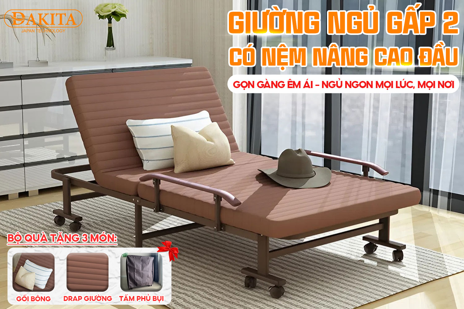 - Giường Ngủ Có Nệm Gấp 2 Đoạn DAKITA