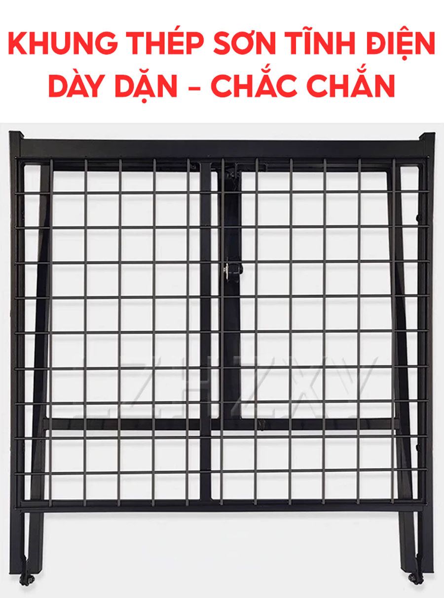 - Thiết kế khung giường bằng hợp kim thép chắc chắn, sơn tĩnh điện nhờ đó kết cấu giường đẹp và bền hơn trong môi trường không gian nội thất gia đình. Thiết kế kết cấu phên lưới lót gỗ tạo độ phẳng ổn định khi nằm.