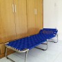 Thiết kế đơn giản, gọn, tiết kiệm diện tích, khung giường inox sáng đẹp, vải dù nằm êm, không kêu cót két khi lăn trở người.