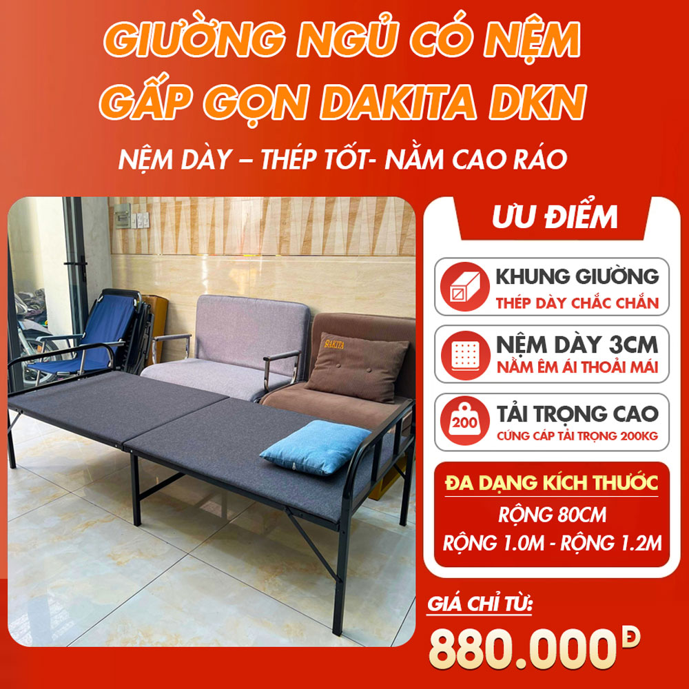 [NỆM DÀY – THÉP TỐT- NẰM CAO RÁO] Giường Ngủ Có Nệm Gấp Gọn DAKITA DKN – 803V