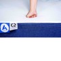 Lớp áo nệm được chế tạo từ vải gấm thun cao cấp với họa tiết trang nhã, phối màu trắng và xanh sang trọng. Mặt trước của nệm được bọc vải gấm màu xanh, tạo điểm nhấn hiện đại và hài hòa cho không gian nội thất. Chất liệu vải bền bỉ, thoáng khí, dễ vệ sinh và góp phần bảo vệ nệm khỏi các tác nhân gây hại từ môi trường.