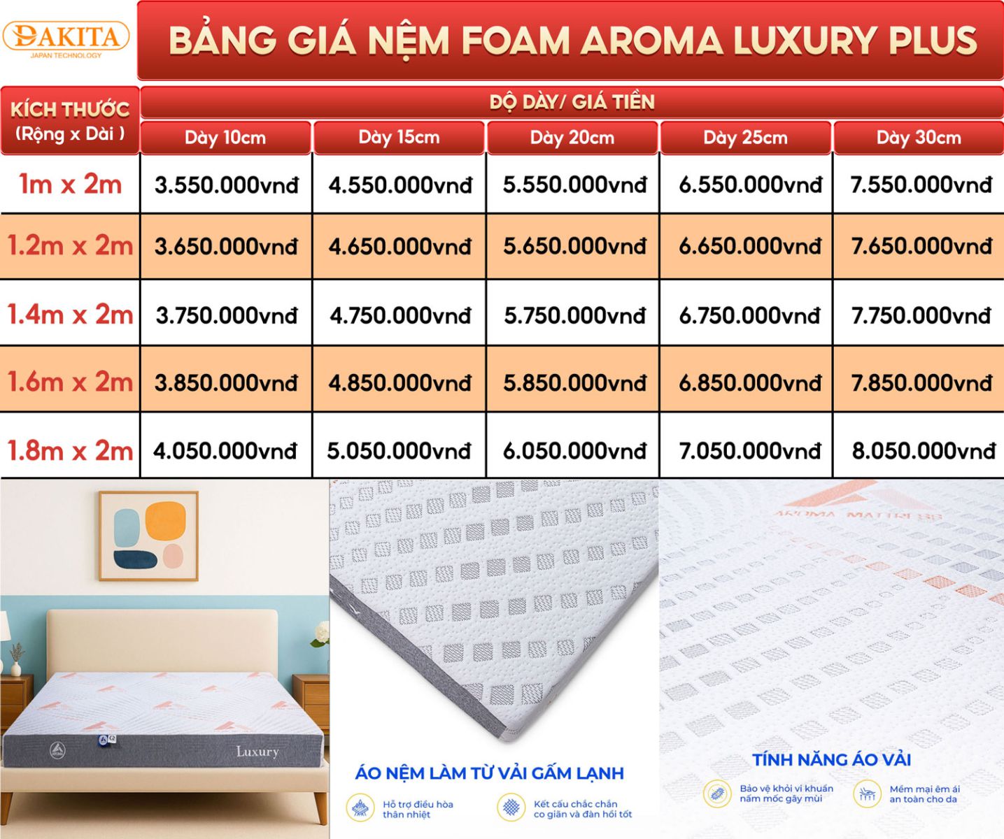 BẢNG GIÁ NỆM FOAM AROMA LUXURY PLUS