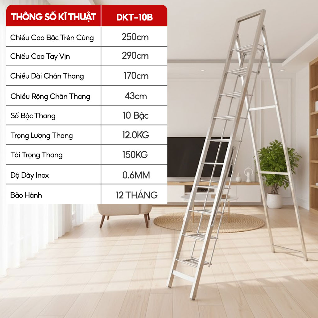 THÔNG SỐ KĨ THUẬT THANG GHẾ BÀN INOX DKT-10B