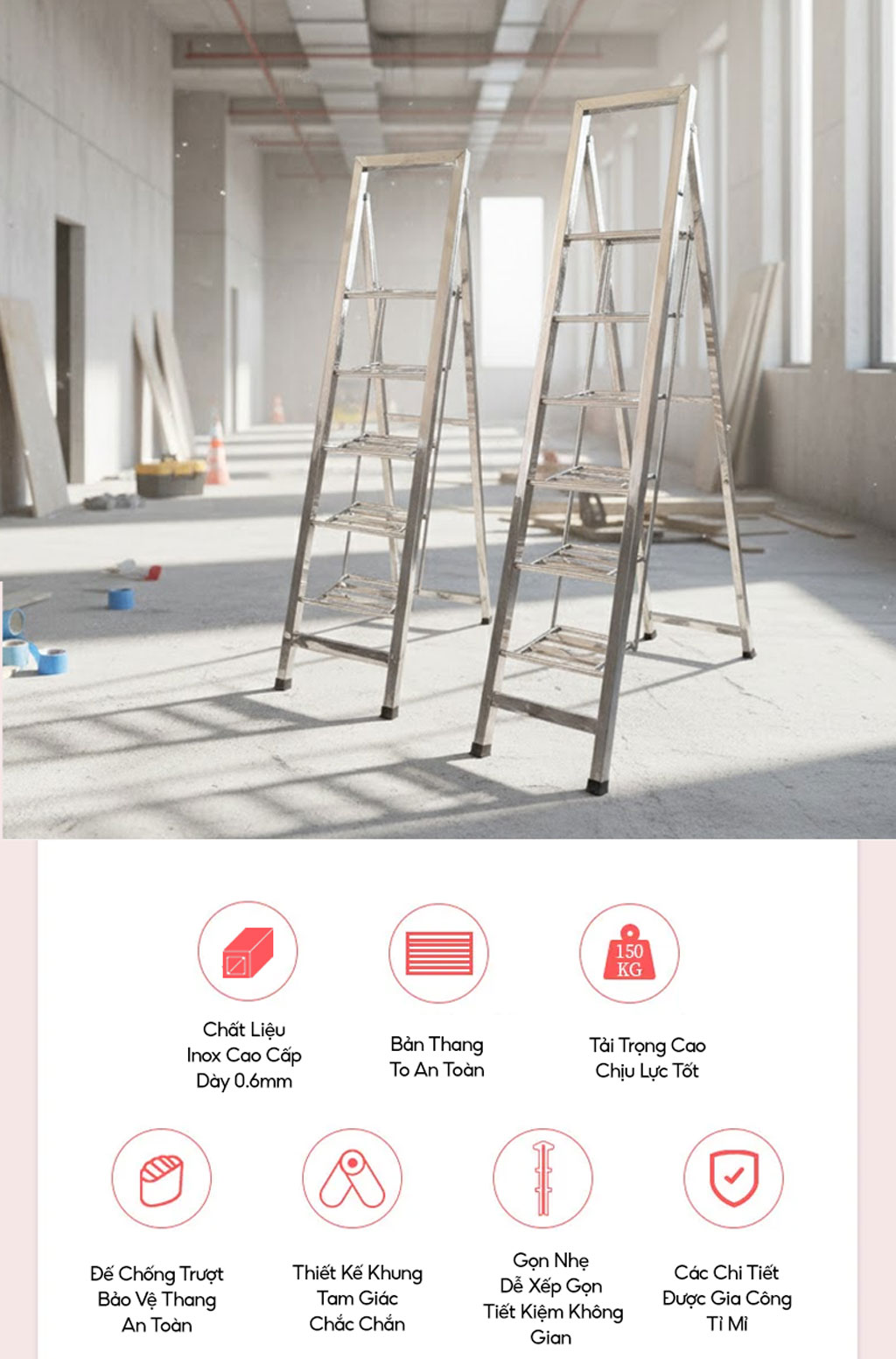 Kiểu Dáng: Thang Inox Chữ A Cao Cấp