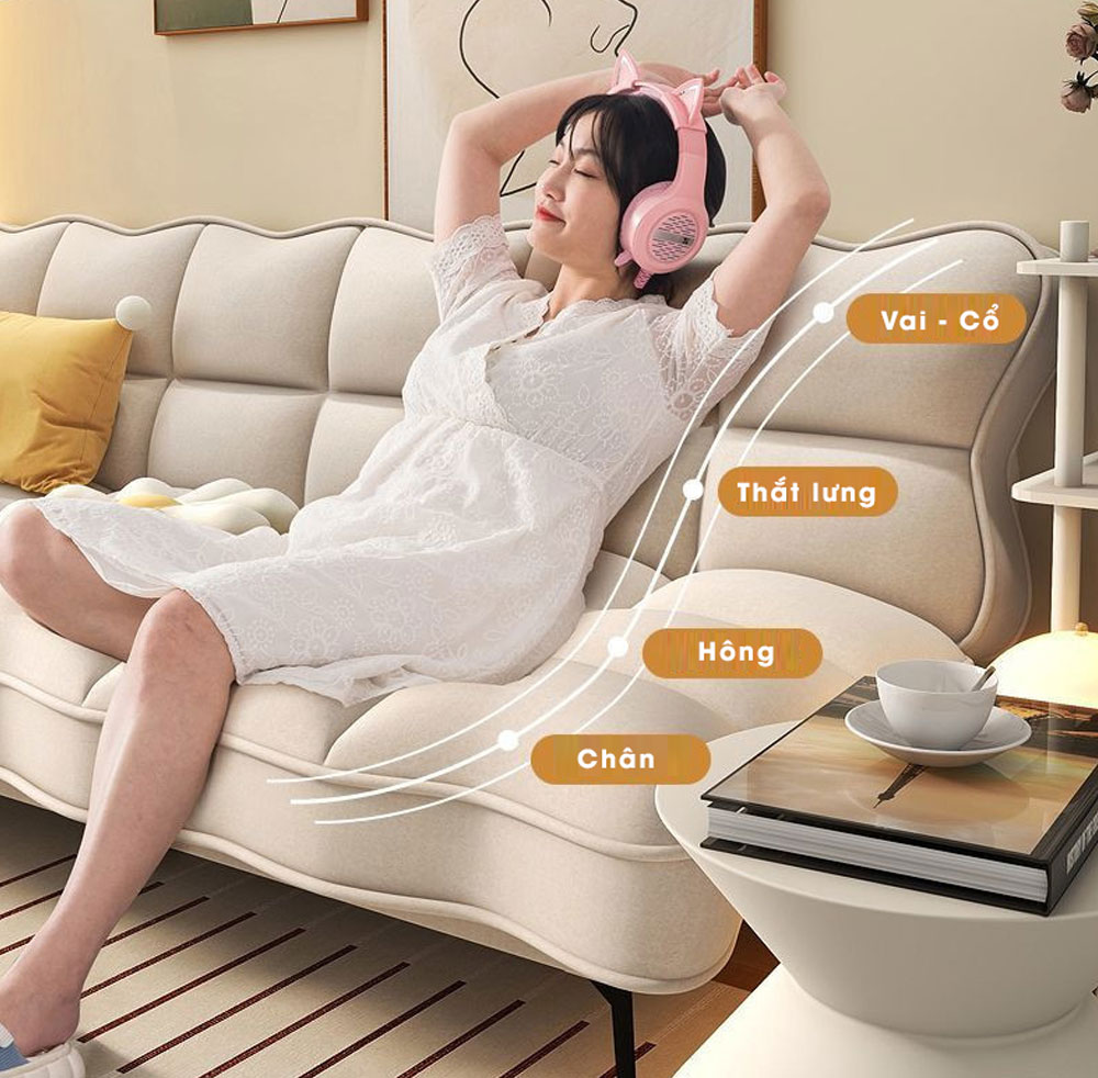- Đệm mút đàn hồi cao, mang lại độ êm vượt trội, hỗ trợ tối ưu cho cơ thể khi ngồi hoặc nằm thư giãn.
