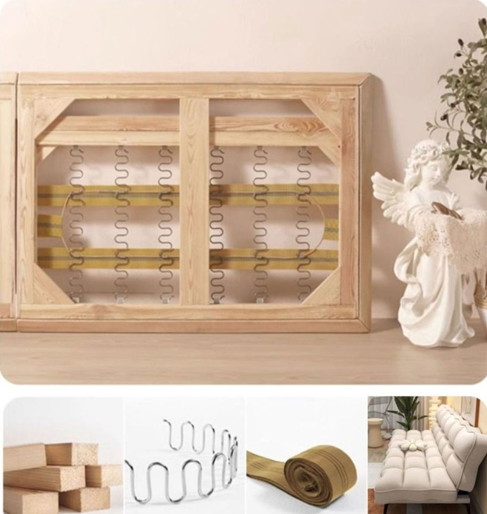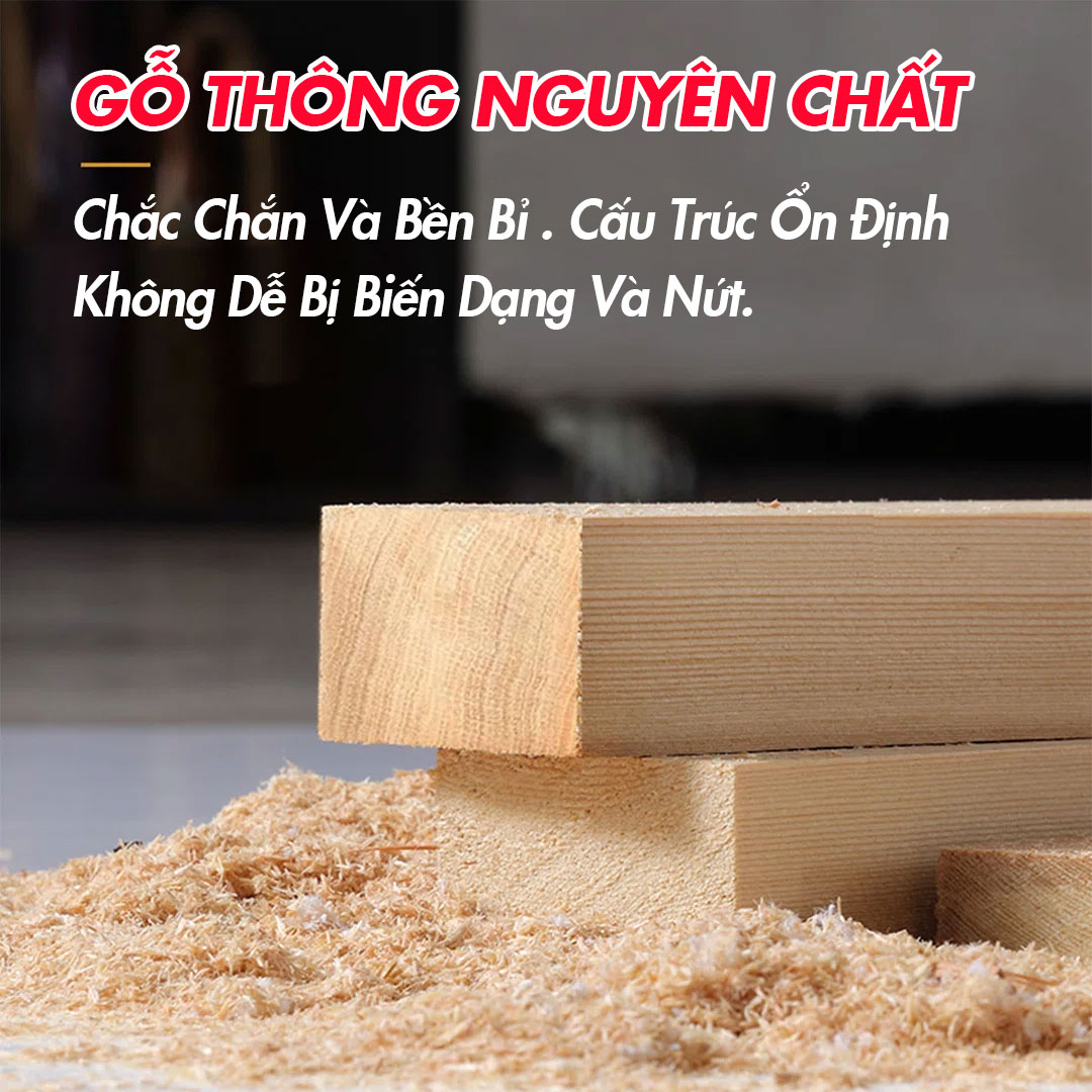 - Khung gỗ thông nhập khẩu, không dễ biến dạng, tăng cường độ ổn định cho cấu trúc tổng thể.