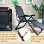 Ưu điểm: Thiết kế thông minh, nhỏ gọn, nhẹ, với 6 chế độ điều chỉnh độ ngã lưng, có thể ngã 180 độ, vừa làm ghế thư giản vừa làm giường ngủ, tích hợp con lăn massage tay êm ái, phần chân có thể nâng cao thoái mái, có nơi để gắn khay đựng ly nước siêu tiện lợi, dễ dàng xếp gọn, dễ dàng di chuyển bất kì vị trí, tiết kiệm không gian.