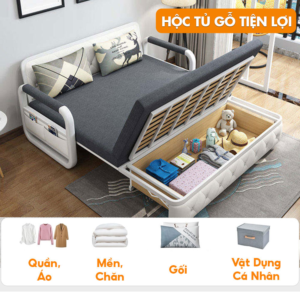 Ghế Sofa Giường DAKITA DKB-912-Hồng Có hộc tủ - Giường Ngủ Thông Minh Gấp Thành Sofa [ Vải thoáng mát]