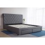 + Giường bọc vải da, đầu giường bọc nệm lớn với đường khâu, chân gỗ.