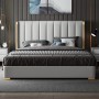 + Giường bọc vải nhung, đầu giường bọc nệm lớn với đường khâu, chân gỗ.