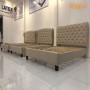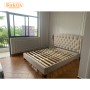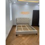 + Giường bọc vải nhung, đầu giường bọc nệm lớn với đường khâu, chân gỗ.