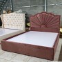 + Giường bọc vải nhung, đầu giường bọc nệm lớn với đường khâu, chân gỗ.