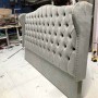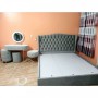 + Giường bọc vải nhung, đầu giường bọc nệm lớn với đường khâu, chân gỗ.