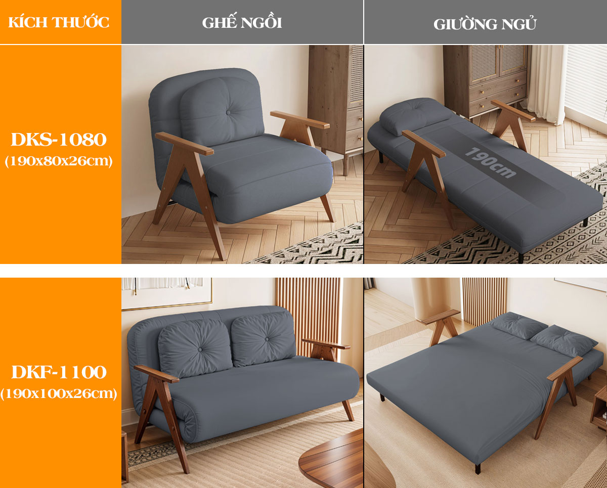 Giường Ngủ Thành Ghế DAKITA DKS-1080 - Màu Xám Đậm - Giường Ngủ Có Nệm Xếp Gọn Đa Năng (Rộng 80cm)