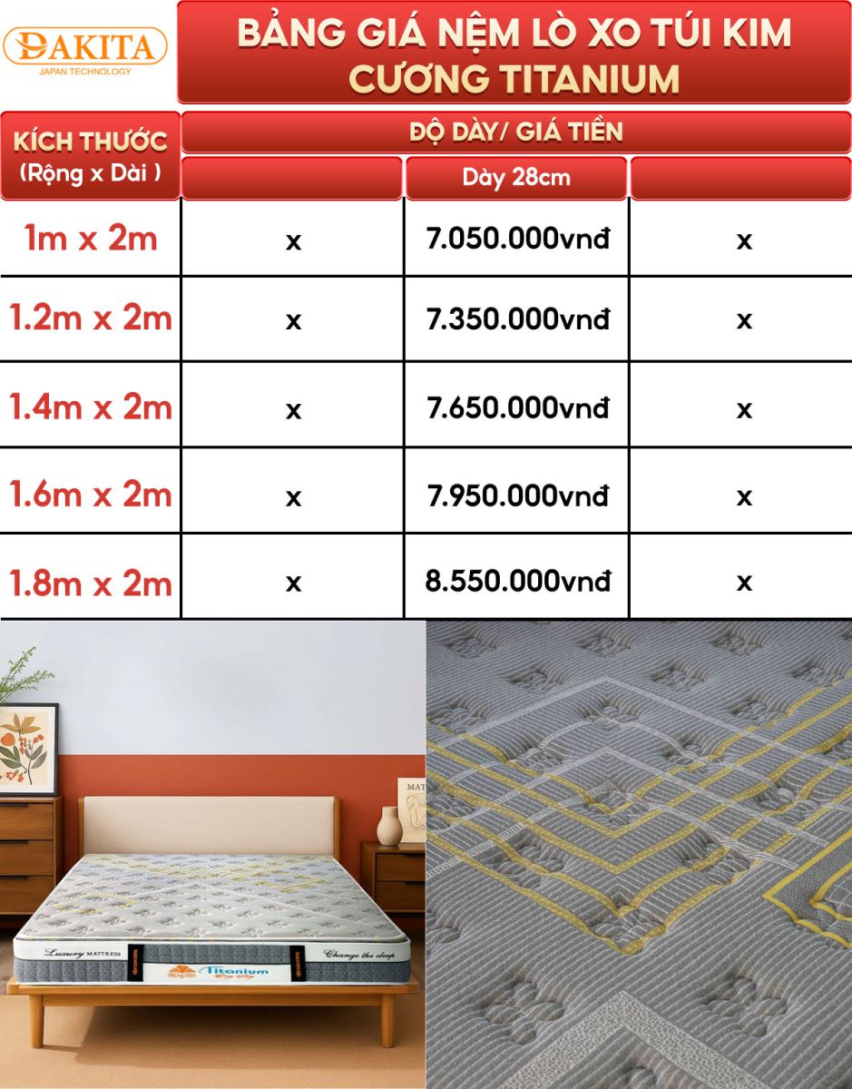 Nệm Lò Xo Túi Kim Cương Titanium