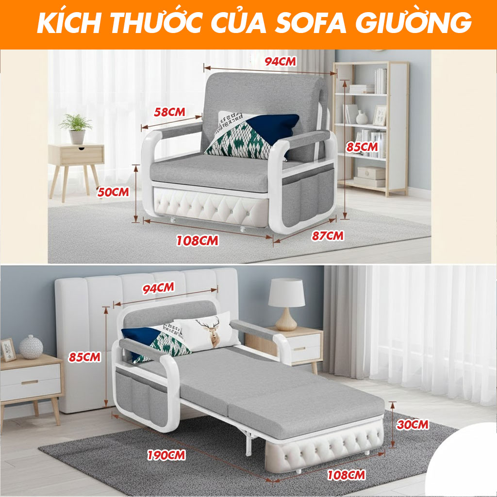 Thiết kế đơn giản mà khá hiện đại. Công năng sử dụng đầy đủ tiện ích. Có thể làm ghế sofa, có thể làm giường sofa. Ngăn tủ cuối giường để đồ rất hay.
