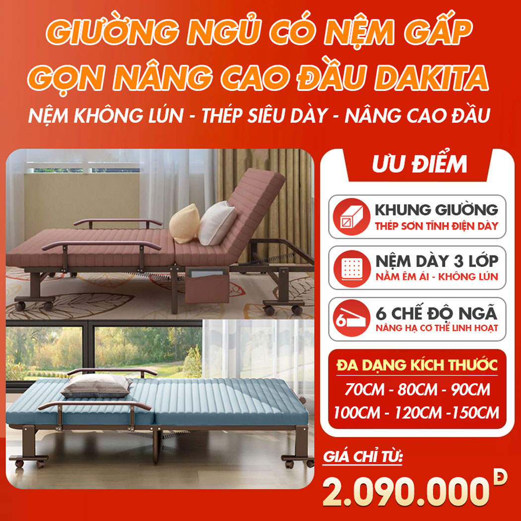 Giường chắc chắn lắm nha, chất liệu khung thép xịn xò, dễ dàng mở ra và gấp gọn lại khi ko dùng nữa, rất gọn gàng tiết kiệm diện tích. Nên mua nha