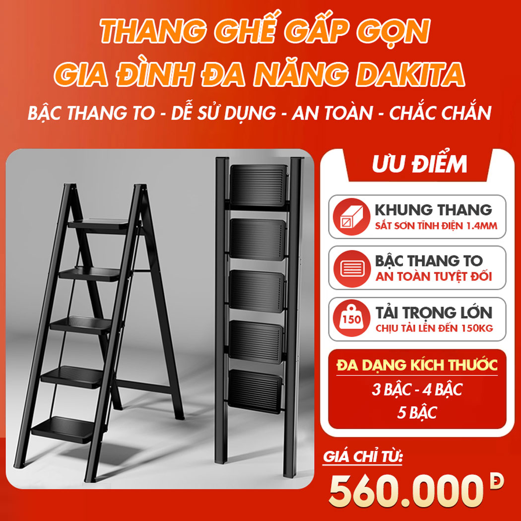 Hàng chính hãng DAKITA bảo hành 12 tháng. Thang nhận bên ngoài nhìn xịn thực sự. tiện lợi