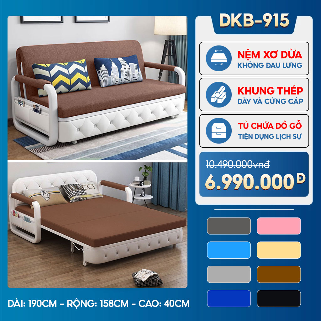 [Rộng 158cm] Sofa Giường DAKITA DKB - 915 Đầy Đủ Màu Sắc Có Hộc Tủ - Nệm Xơ Dừa Cao Cấp