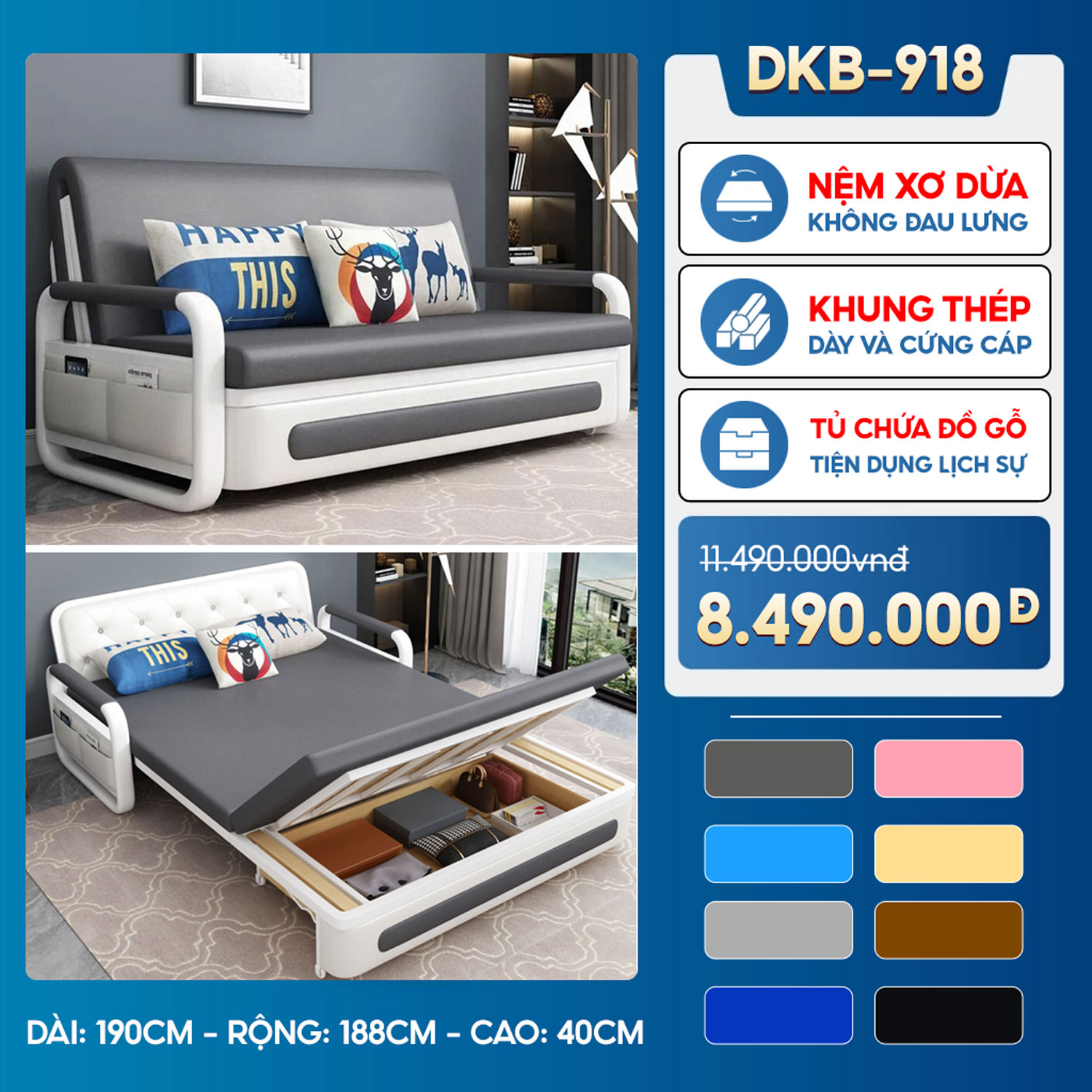 [Rộng 188cm] Sofa Giường DAKITA DKB - 918 Đầy Đủ Màu Sắc Có Hộc Tủ - Nệm Xơ Dừa Cao Cấp