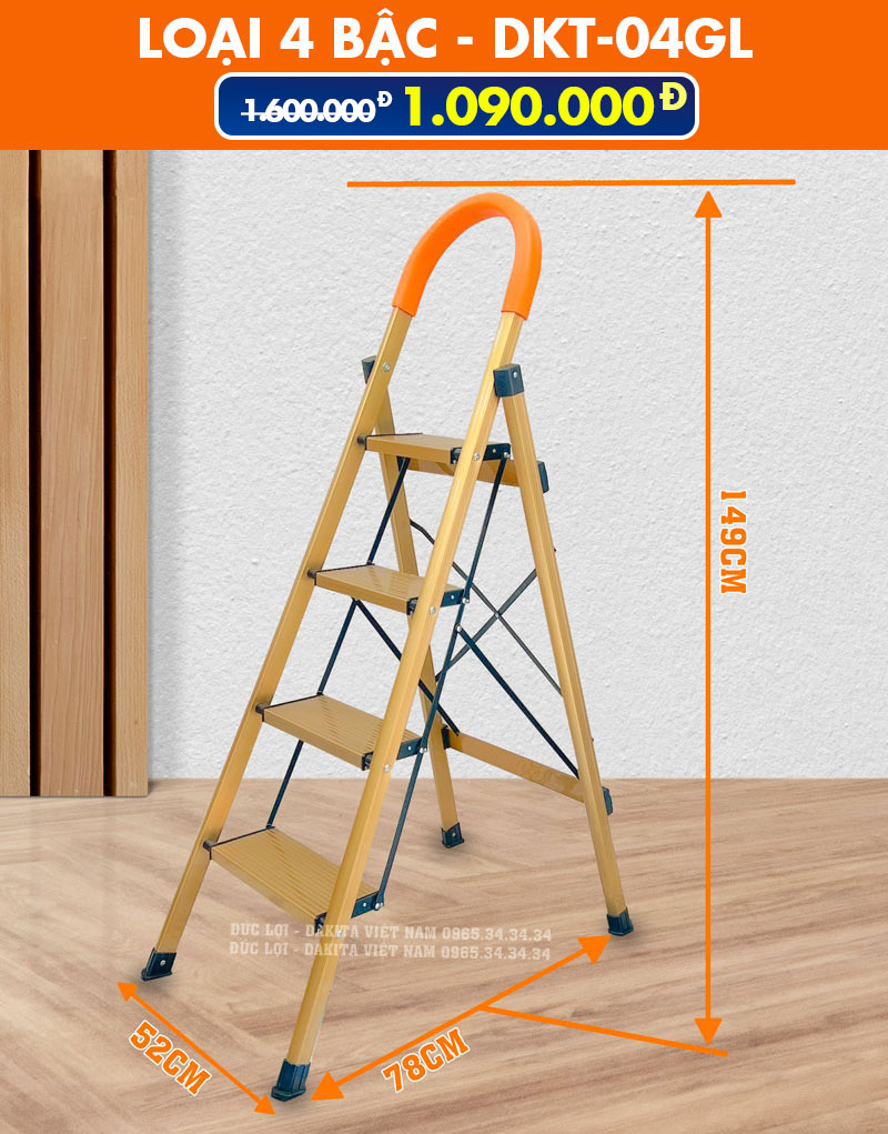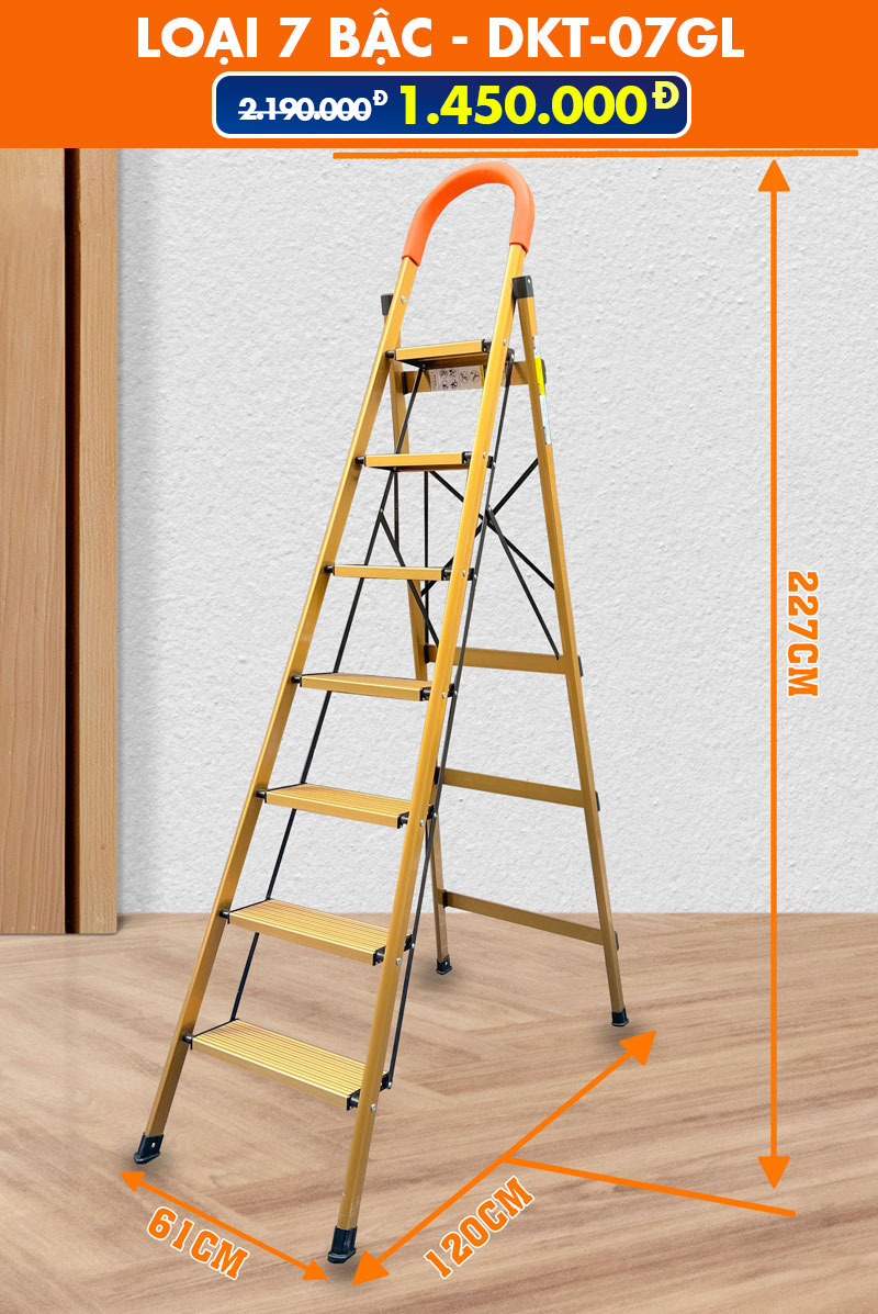 Tên sản phẩm: Thang Nhôm Ghế Tay Vịn Gold - Bậc Thang To Dễ leo Trèo, Thang Nhẹ Nhôm Dày Giá Rẻ