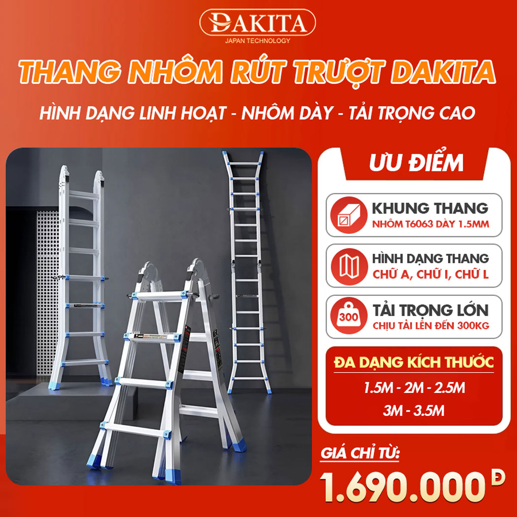 ƯU ĐIỂM SẢN PHẨM CỦA THANG NHÔM RÚT TRƯỢT DAKITA
