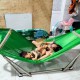 Khung võng bó gọn vào giữa giúp người già và em bé đứng lên ngồi xuống dễ dàng.