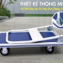 Ưu điểm: Xe đẩy nhẹ, Bánh xe PU loại tốt, càng bánh xe thép dày, đẩy nhẹ, Sàn nhựa dày chịu tải tốt bền bỉ theo thời gian, có thể gấp gọn khi không sử dụng.